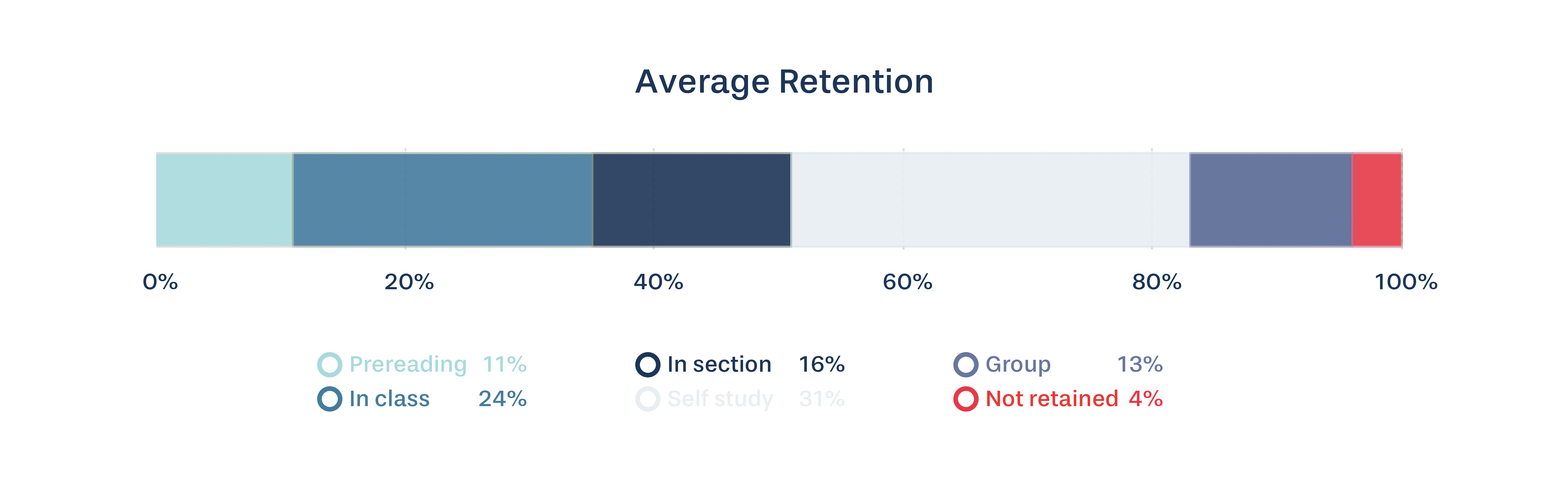 Notice how, if everyone really retained as much information as they claimed they did, their collective testing average would be 96%. As this is highly unlikely, this data perhaps indicates that we really don't know what we don't know.