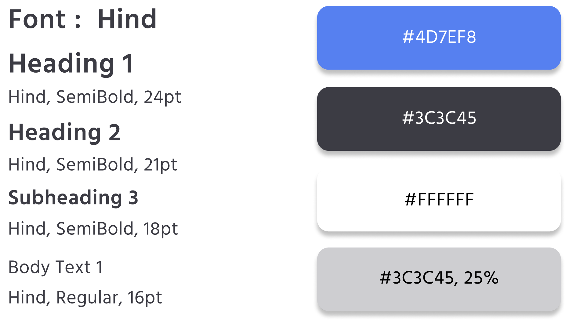 We noticed that color and font inconsistency were driving some of the main issues with the interface. Hence, we established the main functional hierachy of font and color styles and condensed the existing ones into those on the style guide below.
